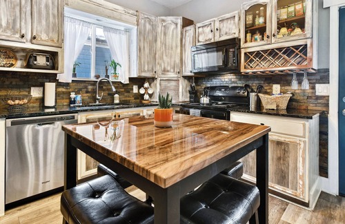 ✔ a full kitchen with plenty of counter space, new appliances [dishwasher, microwave, coffee brewing machine, electric tea kettle], all the cookware + servingware you'll need to cook all your meals
