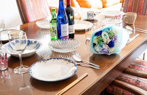 BathroomBidet, Body soap, Slippers, Hairdryer, Toilet, Bathtub or shower, Shampoo, Bathtub, Private bathroom, Toothbrush, Toilet paper, Free toiletries, Shower, TowelsMedia & TechnologyStreaming service (like Netflix), TV, Mobile hotspot device, Flat-screen TVGeneralAir conditioning, Ironing facilities, Trash cans, Iron, Private entrance, Fan, Heating, Fire extinguisher, Smoke Alarm, Key accessOutdoorsBalconyKitchenMicrowave, Electric kettle, Wine glasses, Kitchenware, Cleaning products, Toaster, Dining table, Stovetop, Washing machine, Kitchen, RefrigeratorLiving AreaSofa, Desk, Dining areaBedroomLinens, Childrens' cribsAccessibilityUpper floors accessible by stairs onlyBuilding CharacteristicsDetachedRoom AmenitiesNon-feather pillow, Adapter, Clothes rack, Socket near the bed, Drying rack for clothing, Tatami (traditional Japanese flooring)Entertainment & Family ServicesBaby safety gatesFood & DrinkBottle of waterSafety featuresAir purifiersPhysical distancingSingle-room AC for guest accommodationCleanliness & disinfectionHand sanitizer |