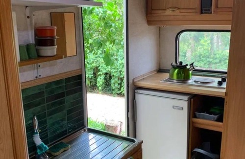 Guest accommodations at 0 bedroom caravan for up to 2 people with swimming pool and barbecue. feature washing machines.