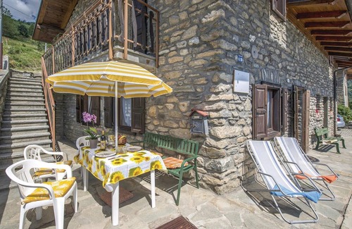 This vacation apartment is located on the first floor of a typical house in Valle d'Aosta with a total of two units. The apartment on the upper floor is occasionally occupied by the owner. The house is located in the mountains of Valle d'Aosta, at 1250 meters above sea level, and is ideally situated for beautiful excursions on the many hiking trails in the area. Across the street from the house is a terrace equipped with a parasol from which you can enjoy a magnificent view of the valley, the town of Aosta and the surrounding mountains. Above the old castle of the village of Sarre is the "Roof of Sarre", a vertical rock face, one of the most difficult climbing walls, very popular among climbers. The town of Cogne is 22 km away and offers more than 70 km of ski slopes. About 12 km away is Aosta, where you can admire numerous monuments of Roman origin and visit the Cathedral of Santa Maria Assunta. In the restaurants and trattorias you can taste the local delicacies of the rich culinary tradition of these areas. Parking on the side street in front of the house.