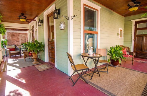 Fully equipped kitchen with stainless steel appliances, marble bath with heavenly jetted tub, dining table, queen bed and a new leather queen sofa sleeper, leather recliner chair, off-street parking for one car, wrap around porch with bistro table, BBQ grill. Internet, Premium Cable (flat screen and cable boxes in both LR and BR), Central AC, Laundry, 2 private entrances. Located just minutes walk to Broadway and a mile and a half to the racetrack.