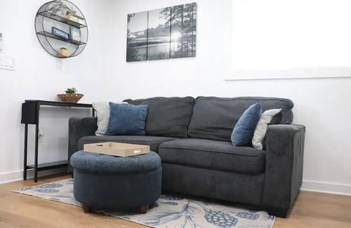 Welcome to your cozy retreat in Dawsonville, GA. Our 1 bedroom tiny lake home sitting on our property features a comfortable queen bed with dresser upstairs and a cozy living room with an additional full bed for extra guests downstairs. TV's accompany both bedroom and living room with Roku features. All linens included for your stay along with bathroom essentials and kitchen utensils. Enjoy amenities like AC, heat, and WiFi during your stay with us. The bathroom is equipped with a shower, "WATERLESS TOILET" and vanity for all your daily needs. Our complete kitchen is sure to WOW! Equipped with an Air fryer, flat top griddle, microwave and Keruig machine you have everything you will need. Don't forget our attached deck overlooking Lake Lanier with dock access. Equipped with a propane grill and seating for that morning cup of Joe. We think our place will help you experience everything Dawsonville has to offer.