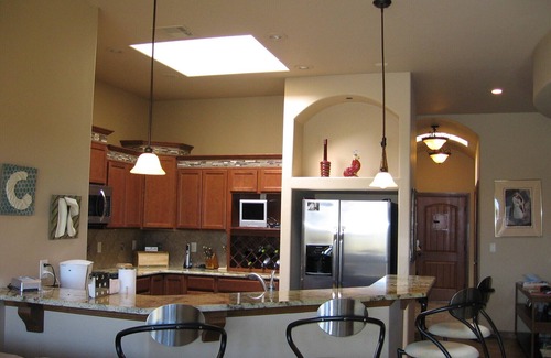 Home features all granite counters, open floor plan with gas fireplace in great room w/Stereo speakers. Separate diningroom. Nat. gas grill on patio. Master bedroom with queen bed, master bath has double vanity, large soaking tub, and 6ft shower. Office with wireless internet, printer. 2nd bedroom has queen sleep sofa, room used as a den with Dish TV with 42' plasma TV w/ surround sound, dvr, dvd, pandora. HD tv in master. 2nd bath has 6ft tiled shower.
