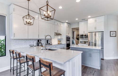 *MARINA BAY PRIVATE POOL VACATION HOME - NEAR JET BLUE PARK* With 6 Bedrooms, (5 have beds, the 6th is an office) 5 Bathrooms and Luxury Accommodations for up to 10, This Marina Bay home is one of Fort Myers Finest Vacation properties. The owners have thought of everything and have provided their guests with posh, modern furnishing and a Bespoke Vacation Experience that will have you coming back again & again.