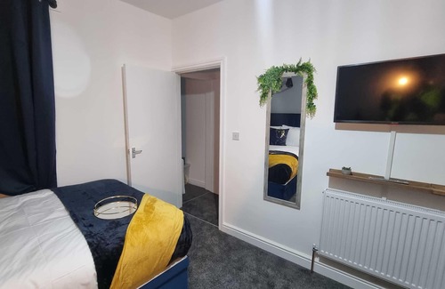 Discover comfort in our central Studio Apartment. Relax in a cosy bed, recharge in a modern bathroom, and enjoy a fully-equipped kitchen. Netflix-ready Smart TV and high-speed Wi-Fi keep you entertained and connected. Free parking nearby. Dive into Birmingham's vibrant scene, from dining to shopping. Book now for an unforgettable stay!
