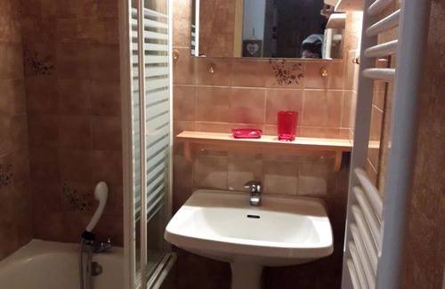 Ideally located near the shops and the ski lifts, this 3 floors residence is composed of 4 halls. Non private parking outside the residence. Situation on the map of the village No. 6 - C3. Surface area : about 24 m². Ground floor. Orientation : South. Living room with bed-settee. Sleeping area with mezzanine simple bed. Kitchenette with oven, dishwasher, microwave, electric cooking rings, fridge. Separated WC. Bathroom with bath-tub. Balcony.