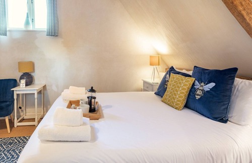Bedroom 2: Kingsize (5ft) Bed, Smart TV Ensuite: Bath With Shower Attachment, Heated Towel Rail, Toilet. Electric central heating, electricity, bed linen, towels and Wi-Fi included. Welcome pack. Enclosed front courtyard garden with garden furniture. Private parking for 2 cars. No smoking. . This wonderful barn is perfectly positioned to explore and enjoy all the delights of North Norfolk. Beautifully restored and decorated to retain its charm, it hosts a stylish contemporary finish, boasting open plan sociable living accommodation, the perfect place in which to relax and unwind on the comfy sofas. It boasts two wonderful bedrooms - a twin bedroom with a high vaulted ceiling, together with shower room on ground floor, and a kingsize bedroom with vaulted, beamed ceiling and en-suite bathroom on the first floor. To the front is a small private courtyard garden, perfect for al fresco dining, and there are excellent trails and paths leading directly from doorstep.