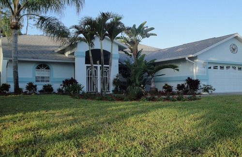 Reviews on homeaway.COM. Our Villa (detached house) is nestled in a very private deed restricted community. Our Villa boasts four bedrooms (two of them suites) and a den, besides the great room with huge vaulted ceilings, the very large kitchen, separate dining area and a Den. A heated swimming Pool/Spa on the covered Lanai & private garden + fruit trees. It has all the needed amenities such as 3 full bathrooms, a washer/dryer room, PC + High Speed Internet, phone Cable etc. Every room has large screen plasma TV/DVD Player. Under 4 miles to the Beach (actual feet in the sand), and just 3.2 miles to 5th Avenue South. All else is walk to. Everything provided even beach lounges.