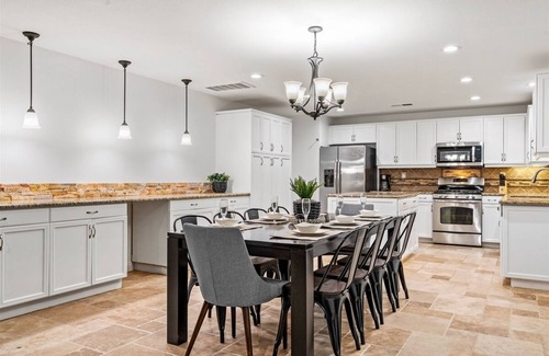 Relax with the whole family at this peaceful place to stay. Pickleball and Putting green. This home counts with plenty of features for the entire family to enjoy. A modern design Pool and Spa. A built-in seven sit table to have your favorite drinks or dinner inside the water! A pickleball Ct, a Ping Pong table, a Pool table, Putting Green, a big patio for the kids to run and play while the adults lie down on the Sun Beds and relax. When it comes to mealtimes, our kitchen is fully equipped for small quick meals or large holiday gatherings. Make the most of our great weather by firing up the Barbecue grill and savour an al fresco dining experience under the stars. We can't wait to offer you the best resort like vacation to your family and friends!