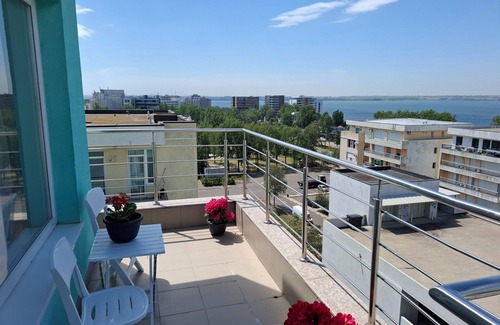 2-rooms apartment on Aleea Argos 4, 30 meters from the beach and the sea, maximum 4 people, large balcony, splendid view of Mamaia Lake, the sea and the beach, in a building with elevator (lift).