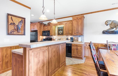 Screw, Kitchen Linens (Liquid Dish Soap Provided), 12-Cup Coffee Maker & Filters (1 Regular & 1 Decaf Coffee Pack, plus 1 Accompaniments Pack Provided), Toaster, Blender, Wine Glasses, Salt & Pepper, Dining Table with 6 Chairs, Breakfast Bar with 3 Bar Stools, Hardwood Floor (Dining)