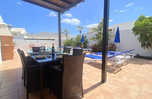 Perlita is a newly refurbished detached 3 bedroom villa (May - June 2022), totally private villa with a heated pool, pool table, Table tennis and Hot Tub situated in the exclusive residential area of Los Mojones, Puerto Del Carmen. It is a 10 to 15 minute stroll to the main promenade of Puerto del Carmen or The Old Town with its golden beaches, local tapas bars, restaurants, supermarkets and boutique shopping. It is ideally located for someone looking for a relaxing holiday in the sun, within easy walking distance of all amenities.