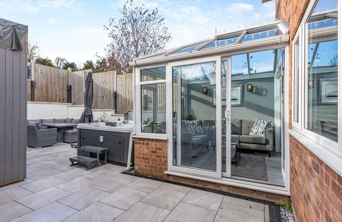 Bathroom: Bath, Cubicle Shower, Toilet. Gas central heating, electricity, bed linen, towels and Wi-Fi included. Travel cot and highchair available on request. Enclosed rear garden with patio and garden furniture. Hot tub for 5 (private). Bike store. Private parking for 3 cars. No smoking.. ’House in the Hills’ is a delightful place to stay, offering comfort and convenience for up to six guests, and nestles in charming Church Stretton. As you step inside you are greeted by an open plan and tastefully decorated living/dining area. The large windows from the conservatory bring in tons of natural light, creating a bright and airy atmosphere. The well-equipped kitchen boasts modern appliances and ample counter space for preparing meals. Whether you’re whipping up a quick breakfast or a gourmet dinner, you’ll find everything you need within easy reach. Upstairs there are three inviting bedrooms, each thoughtfully decorated to ensure a restful night’s sleep. In addition to the ground floor bathroom there is also a first floor family shower room equipped with a cubicle shower. The highlight of House in the Hills is the lovely large, enclosed patio at the rear. This private oasis is perfect for enjoying your morning coffee or unwinding in the evening after a day of exploration. The patio is tastefully furnished with comfortable outdoor seating, allowing you to bask in the fresh air and soak in the picturesque surroundings.
