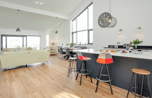Kitchen area: Electric Oven, Electric Hob, Microwave, Fridge/Freezer, Dishwasher, Washing Machine, French Doors Leading To Balcony. Air source heat pump central heating, electricity, bed linen, towels and Wi-Fi included. Travel cot, highchair and stairgates available on request. Welcome pack. Garden with patio and garden furniture. Enclosed front garden with sitting-out area, garden furniture and barbecue. Hot tub for 6 (private). One well behaved dog welcome. Bike racks. Electric car charging point (shared with other properties on-site, at cost). Private parking for 3 cars. No smoking.. Nestled at the foot of the Quantock Hills (England’s first designated Area of Outstanding Natural Beauty), Bincombe Country Cottages are located outside the small hamlet of Over Stowey near Bridgwater in Somerset. The site comprises of four luxurious holiday homes newly built in 2021; two end terrace, three-bedroom properties and two mid-terrace two-bedroom properties. These exceptionally stylish terraced properties are ideally located for enjoying superb walking in the peaceful countryside of the Quantock Hills and they each showcase a private front and back garden with a hot tub, a balcony, underfloor heating throughout, free parking and reverse-style living making the most of the views of the north Somerset coast in the distance and you can even see Glastonbury Tor on the horizon on a clear day.