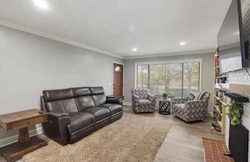 Relax in a warm and inviting living area, fully equipped kitchen, and comfortable bedrooms designed for restful nights. Peaceful Backyard Retreat: