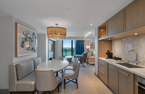 Relax and unwind at the luxurious JW Marriott Clearwater Beach. The three-Bedroom Residence is equipped with a kitchenette space (NO stove or oven! Mini-fridge and microwave only), dining space, and living room area, separated from 3 spacious bedrooms and bathrooms. The primary bedroom is home to a king bed, while the first guest bedroom is prepared with a king size bed and the second guest room offers two queen-sized beds. The private balcony runs the length of this elevated unit. The unit also features stunning views of the Gulf of Mexico from the private balcony, while the secluded, private beach allows guests to enjoy the pristine white sand and sparkling water of Clearwater Beach without the hassle of the crowds!