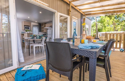 Postcard getaway on the Arcachon Bay! Our modern and cosy 2-Bedroom Mobile Home welcomes you in a calm setting with direct access to Lake Saint Brice and its beach. Our unbeatable location is the ideal starting point to discover the region with many hikes and bike trails nearby. On-site, guests can enjoy a varied range of amenities such as a water park, sports fields, bike rentals & more. Come and explore all that this amazing destination has to offer!