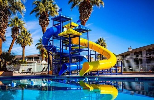 Green Valley is considered "the place to be" in St. George for visitors who want to enjoy a resort experience, but be close to town and all St. George has to offer. It's conveniently located within 5 minutes to the I-15 freeway for accessing shopping, dining, attractions, and more. You're also within walking distance of the BeMore Complex that offers The RinQ, The Grip Ninja Warrior, Nets on Fire, and several other fun amenities like a small outdoor putting green and a restaurant with indoor/outdoor seating. Within the Green Valley area is Thunder Junction All Abilities Park, Tonaquint Nature Center, and many other fun green spaces. With all the new excitement in Green Valley, you will never have a minute of boredom staying here!