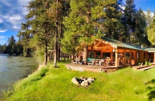 Book now and make your next family reunion unforgettable! Imagine you and yours in the rustic charm of Montana at the Swan River Retreat! Our unique property features five log cabins nestled directly on the Swan River, offering stunning mountain views. Cabins: Main Cabin (1,500 sq ft): The heart of the retreat, featuring 2 bedrooms (1 king, 1 queen), 3 bathrooms, a spacious kitchen with modern appliances, and an open concept dining/living area with a foldout couch. Enjoy the massive 600 sq ft lighted covered deck with outdoor dining for 14, a cozy seating area for 8, a foosball table, and a handcrafted log pool table.