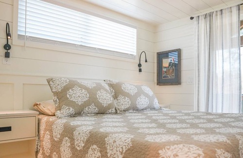 Crane's Nest is a custom-designed tiny home. This 58' home features a master suite with a queen size bed and an attached relaxing porch for some quiet time. Other features include a kitchen with an oven and a dishwasher, living area with a fireplace, full bathroom with soaking tub and shower, washer & dryer, upstairs loft with separate rooms each with a twin bed and relaxing space to watch TV. The main entrance is through a second large screened-in porch perfect for outdoor dinning or entertaining