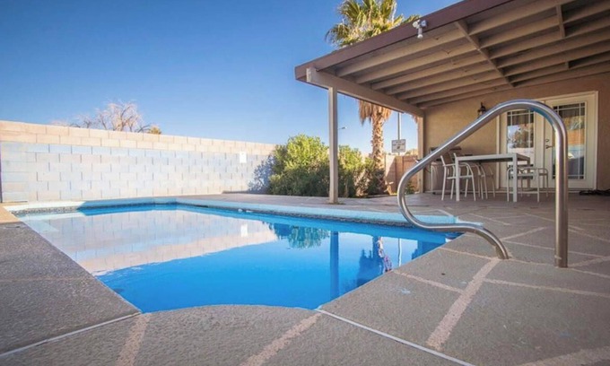 You will be close to everything when you stay at this centrally-located home. 10 mins away from the Las Vegas Strip. Stylish unique vacation home with pool for relaxation. Close to groceries and restaurants.Peaceful neighborhood. Great for vacation.