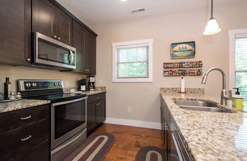 This updated 3BR/3.5BA retreat in Arden sleeps 6 and offers private en suite bathrooms for every bedroom, a fenced backyard with fire pit, and free daily attraction passes for stays under 28 days. Just 20 minutes to Asheville and The Biltmore Estate.