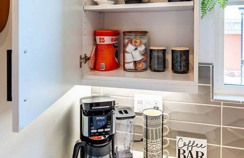 Located near shopping, the airport, and freeways. Enjoy the amenities like a fire pit, exercise room, and community space. High-speed internet, laundry, and a stocked kitchen make for an easy stay—just bring your essentials, food and clothes.