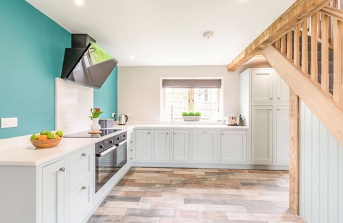 Bathroom: Bath With Shower Attachment, Toilet. Air source heat pump underfloor central heating, electricity, bed linen, towels and Wi-Fi included. Initial fuel for wood burner included. Travel cot and highchair. Stairgate available on request.. Enclosed rear garden with patio. Hot tub (private). Private parking for 4 cars. No smoking.. Reed Cottage is no ordinary cottage; it’s a fabulous barn conversion, renovated with great attention to detail, with eco-friendly, underfloor air source heating on the ground floor and befitting fixtures and fittings throughout. The exposed beams, large open plan living area and grand dining room table, make the living space a great area in which to socialise with all your family and friends together. The contemporary, well-equipped kitchen, with its double oven, is ready to invite you in for that celebratory meal you’ve been planning. Whether you wish to gather around the ten-seater dining table, snuggle up on the sofa by the wood burner, or retreat to the snug with a book, there is somewhere for everyone to relax.