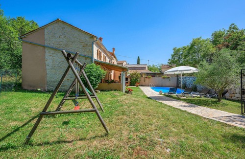 This vacation house with swimming pool was originally built at the end of the 19th century, it is completely renovated and adapted to modern living standards. It is located in a small, quiet place in the middle of Istria and near the larger village of Zminj. In the courtyard there is a covered terrace, an outdoor grill and a swimming pool, which will offer you refreshment in the hot summer days. The comfort and equipment of this vacation property will offer you a vacation you deserve. Visit the sights in the larger towns of Istria.