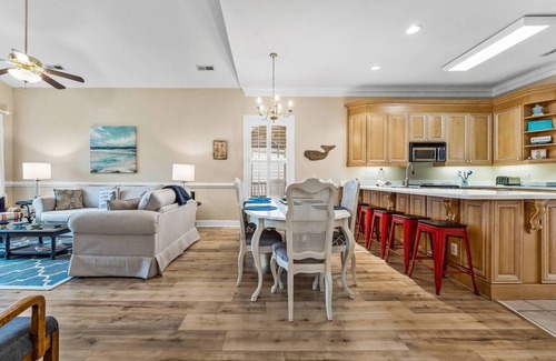 FOR SUMMER RENTALS: In an effort to better manage and make more affordable your experience at our condo, beginning the second to last Saturday in May and ending the first Saturday of September there is (i) a 7-night minimum stay, and (ii) only a Saturday Check In and Saturday Check Out. Located 20 miles south of Myrtle Beach - 10 minute drive to Murrells Inlet; 15 minutes to historic and revitalized Georgetown; 2 hours to Charleston; and 3-1/2 hours to Hilton Head and Savannah. This pet-friendly condo is the Perfect Vacation Spot for Families, Beach Lovers, guests in town for a wedding or golf outing and who want to enjoy golfing, fishing, bike riding and tennis. Spacious, recently painted and updated with all new furniture - 4 bedrooms, 3 full bathrooms, pet-friendly condo sleeps 10 (3 king size beds and a queen-over-queen bunk bed - also available for your use are 2 queen-sized air mattresses, 2 infant's pack & play/cribs and a high chair) in the Avian Forest community (located directly across from and with free access to Litchfield By The Sea's private ocean beach). Large kitchen for entertaining with an island that seats 6, dining table for 10, and washer & dryer in the unit. The Avian Forest pool is a few steps from your front door and you’re a 2-minute drive from enjoying the private ocean beach at Litchfield By The Sea (plenty of free parking). In addition to the nearby beach at Litchfield By The Sea, Avian Forest is surrounded by golf courses (9 courses within 5 miles) and paved walking, bicycle and nature paths. We are about a 1-hour drive to Charleston; 5 minutes to Murrells Inlet; 10 minutes to Georgetown; and 15 minutes to Myrtle Beach. Our 1-car garage can accommodate up two 6-seater golf carts, bicycles, fishing gear, beach chairs, golf clubs, etc...