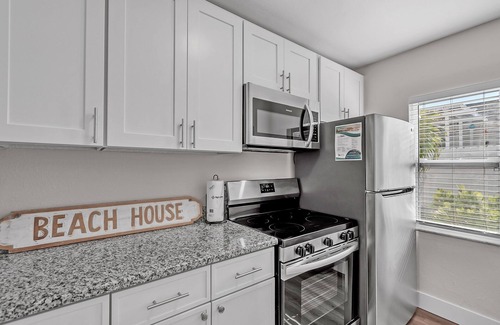 Located in the heart of Treasure Island, you'll find yourself just a short stroll from the beautiful beach, perfect for sunbathing and swimming. Explore nearby attractions like the historic Fort De Soto Park, John's Pass Village and Boardwalk in Madeira Beach, or venture over to Tampa for a day to check out the Florida Zoo, Florida Aquarium, Hard Rock Casino, Busch Gardens and more!