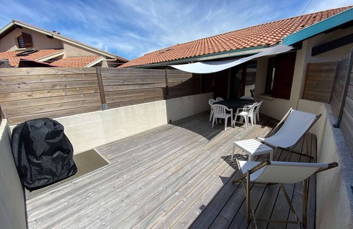 45m² semi-detached single storey duplex apartment for 5 people located near the beach and shops. 26m² terrace facing south with garden furniture. Private parking. WIFI internet.