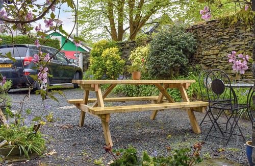 A large homely five bedroom en-suite property, in the centre of Bowness with private parking for two cars. Originating as a police station and jail in 1843 and extended in 1858 to include the courthouse. This sizeable property is warmly decorated throughout with a real homely feel and plenty of space for everyone to enjoy. The accommodation consists of a well-equipped family kitchen/breakfast room with a breakfast table and chairs and a traditional pulley maid for drying clothes should you need to. The comfy living room has plenty of seating for everyone including a Smart TV and living flame effect fire and a cosy reading snug area. The dining room has table and chairs to accommodate up to ten people, a Smart TV and a choice of games, and off this room is a small shower room. Outside to the front of the property is a small seating area with a picnic table to enjoy relaxing outside on warm sunny days.