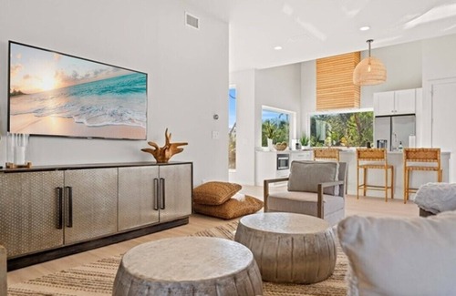 Modern beach retreat just 5 minutes from the sand! This beautifully designed Palm Coast home features a gourmet kitchen, open-concept living, an outdoor shower, sunlit office, ping pong, and a serene patio. Perfect for families, remote work, or group getaways. Walk to the beach, unwind in luxury, and enjoy optional concierge services like golf cart rental. Experience the best of coastal Florida living!