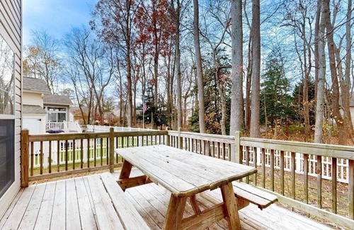 You will love the Eat-In Kitchen with Child's High Chair, Family Room with Sectional Sofa, Loveseat and 2 Chairs, Living Room with Sofa and attached Chaise'. Large 3 Season Enclosed Deck that leads to a Deck with table for outdoor eating and fun. Fenced Secluded Backyard with Over-Sized Outdoor Private Shower for those "after the beach" Sandy Bodies.
