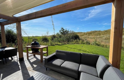 Duinvilla Wellness 5 is a new, luxury detached villa located on beautiful Texel. Upon entering, you step into a spacious entrance hall with access to separate toilet and the bright living room with open kitchen. The sand-coloured kitchen is equipped with high-quality kitchen appliances and includes an induction hob, combination microwave, dishwasher, oven and built-in fridge with freezer. Also on the ground floor is one of the bedrooms with double bed and direct access to the bathroom. A staircase in the hall leads to the first floor with another 2 bedrooms and a bathroom. One of the bedrooms is suitable for 1 person, the other bedroom has a double bed. Both bathrooms are stylishly finished and the first-floor bathroom has a semi-detached bathtub. There is also an infrared sauna. The garden has a pergola and a hot tub, which is controlled by the heat pump. You can also enjoy cooking outside in the outdoor kitchen. There are 2 parking spaces at the holiday home.