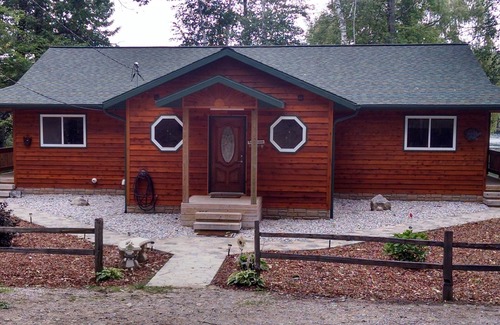 Located in Traverse City Michigan, this lovely 14 yr. old Lodge sits on a private 1 acre lot with 100 ft. of sandy beach frontage on beautiful High Lake, a peaceful 50 acre semi private lake with very low water traffic but much natural beauty including the wild life and water fowl. Even the Bald Eagles nest here. Located only 4 miles from the Cherry Capital Airport, 8 miles from down town Traverse City and just 7-9 miles from the beautiful East & West Grand Traverse Bays yet in the winter you can snowmobile, cross country ski, snowshoe or ice fish right from the Lodge, only ¼ mile to groomed trails,(maps are available), and in the summer the lake is wonderful for swimming (Sandy Beach)and any water sport.