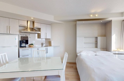 Bright, fully renovated studio located at the foot of Mont-Sainte-Anne, sleeps up to 4. The studio includes a Queen-size bed and a double sofa-bed. It also includes a kitchenette with everything you need for cooking.
