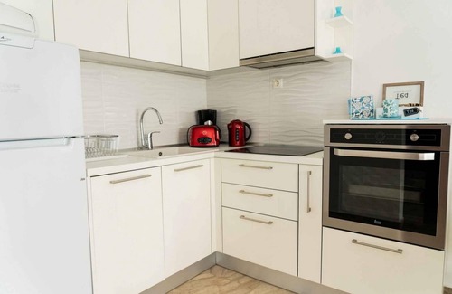Zennova #6 Nea Plagia Beach apartment is exceptionally furnished, elegantly decorated, comfortable and complete with all the modern equipment of a home and consists of a spacious bedroom and living room with dining area and a fully equipped kitchen that can accommodate up to four (4) adults.