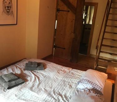 Food & DrinkTea/Coffee makerBathroomAdditional bathroom, Toilet paper, Toilet, Bathtub, Towels, Bathtub or shower, Walk-in shower, Shower, Guest bathroom, Private bathroomMedia & TechnologyTV, Flat-screen TV, Satellite channels, DVD playerOutdoorsOutdoor furniture, Balcony, Outdoor dining area, Patio, TerraceKitchenHigh chair, Stovetop, Electric kettle, Refrigerator, Toaster, Dishwasher, Cleaning products, Coffee machine, Kitchen, Dining table, Wine glasses, Oven, KitchenwareLiving AreaSofa, Sitting area, Fireplace, Dining areaGeneralHeating, Hardwood or parquet floors, Fire extinguisher, Private entrance, Tile/Marble floor, Smoke Alarm, Key accessViewView, Garden view, Mountain viewBedroomChildrens' cribs, Linens, Wardrobe or closetAccessibilityUpper floors accessible by stairs onlyBuilding CharacteristicsSemi-detachedRoom AmenitiesDrying rack for clothing, Socket near the bed, Clothes rack, Non-feather pillowCleanliness & disinfectionHand sanitizer |