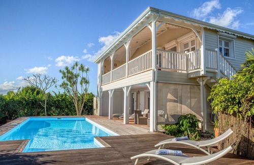 This villa on two levels is offered to you by Antilles Exception. It is decorated and fully equipped, and can accommodate up to 10 people with its 5 bedrooms.