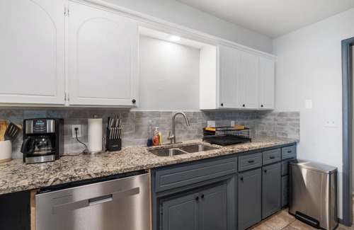 Gather comfortably in this spacious 8-bedroom, 4.5-bath home—perfect for families, teams, or mid-term stays near OKC. The open-concept layout features a cozy living area with a fireplace, dining for 8, and a breakfast bar for additional seating. The fully equipped kitchen includes granite countertops, stainless steel appliances, and all essential cookware for home-cooked meals.