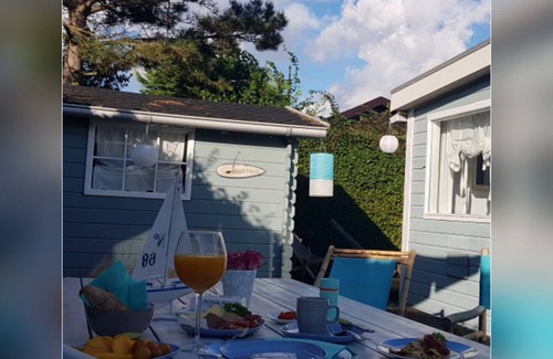 In this cozy beach house you immediately go into vacation mode. Newly furnished rooms, lovingly decorated in the typical beach style. Here you can hang out, cook with friends / family or relax on the wooden deck. Nice living room with open kitchen, bathroom with bathtub and bedroom. The house is located in a very quiet park in an ingrown plot, in which one cannot see. Parking fee 1.50 per day.