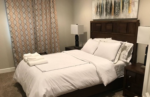 cozy, comfortable, fully furnished basement unit . There are two bedrooms(2 Queen beds), a kitchen/wetbar ,a living room and one bathroom .The carpet is brand new and sparkling clean.The interior is spacious with a 10 ft ceiling.
