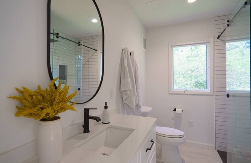 Welcome to 'Blue Ridge Reverie' in the Pisgah National Forest, just minutes from Asheville! This luxurious A-frame blends mid-century and Scandinavian styles, perfect for families. Accommodating up to 10 guests, it features a chef's kitchen, a dual-level deck for gatherings, and is surrounded by tranquil nature. Experience stunning sunsets, lush landscapes, and starlit nights. There's also a 30 ft dog run available for those of you with furry friends. Your perfect mountain escape awaits!
