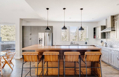 Soak in the hot tub on the deck while taking in a panorama of awe-inspiring mountains, including Bandit Peak and Rosalie Peak. Relax by the flickering gas fireplace while admiring the alpine views out the sky-high windows. Reconnect with friends and family in our game room, where nostalgic thrills (yep, that’s a Ms. Pac-Man arcade), foosball, board games, and a well-stocked DVD library await. You won’t have to duke it out over who gets the best room here, thanks to two (!) primary bedroom suites with 680-thread-count linens on the king beds, walk-in closets, private decks, and spa-like bathrooms with deep soaking tubs! We splurged on high-quality furniture from Room & Board, Denver Modern, Soho Home, Article, vintage Eames for Herman Miller, and more. Chefs will love the tricked-out kitchen, complete with a new Café induction stovetop; we also recently added Starlink satellite internet for high-speed WiFi. Parents will appreciate the cabin-themed twin trundle bed for kiddos (and a real hotel-quality crib for infants). Those with EVs like Tesla will be happy to know that we just outfitted the house with a Tesla Universal Wall Connector for a quick charge. Skytop Mountain House is close to fishing and hiking galore…and just a 60 minute drive from Denver and 48 minutes from Red Rocks amphitheater!