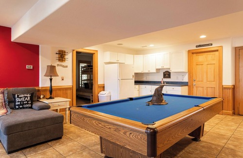 The ground floor is where the fun truly begins in Diagon Alley! Challenge your family to a game of pool or arcade classics, or enjoy board games and comfy seating. The nearby kitchenette—dubbed The Leaky Cauldron—makes it easy to grab snacks or refreshments. This level also features The Room of Requirement, a master bedroom with a private bathroom, offering the ultimate convenience.