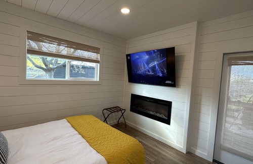 Villeta Giallo is perfect for a relaxing getaway, Italian-Style. This private bungalow boasts a beautiful great room with a well-stocked kitchenette with everything you’ll need to make snacks and meals using the outdoor griddle/grill combo. The lovely queen-sized bed overlooks the flat screen and electric fireplace. The separate bathroom has plenty of space with a gorgeous vanity and large walk-in shower. The deck is perfect to enjoy the breathtaking views and wildlife.