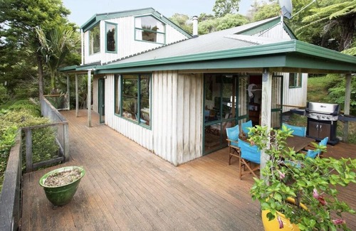 An old school kiwi bach nestled in native bush, the perfect place to relax and unwind. As you relax outside on the deck surrounded in native trees, you may be joined by beautiful native bird life including Tui, Kererū, fan tails and Kaka - you may even hear Kiwi or Morepork’s at night. During summer, you could head outside to the deck and hang out at the table, nestle into beanbags, get into the deck chair or go full on relaxation mode on the outside lounge or head to the beach which is only 2 minutes walk away. For winter, you could snuggle around the fireplace making s’mores, watch the multiple DVD’s on offer, play multiple games or lose yourself in the many jigsaw puzzles on offer. The beach is 2 minutes walk from the property. The beach has a kids playground. Great swimming with the in-tide or the chance to take a walk on the rocks around to Baddeldeys Beach at low tide. **Wireless is available and unless your phone is connected to Spark there is minimal mobile reception. You could choose to enable your phone to wi-fi calling or embrace going off-line for a while**. Local attractions: Tawaranhui beach is 11 minutes for swimming, walking, snorkelling and surfing. Omaha is 11 minutes away . Matakana is 15 minutes away so easy to go into the famous Saturday markets. Also close by is Goat Island, Pakiri, Point Wells and Leigh.