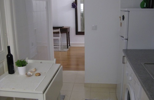 The apartment is very charming. It has a living room with one full size sleeping sofa and a TV. The bedroom is fitted with a large double bed. The kitchen is fully equipped. The bathroom is quite small which is typical for this type of Portuguese housing. It has a toilet and a shower.